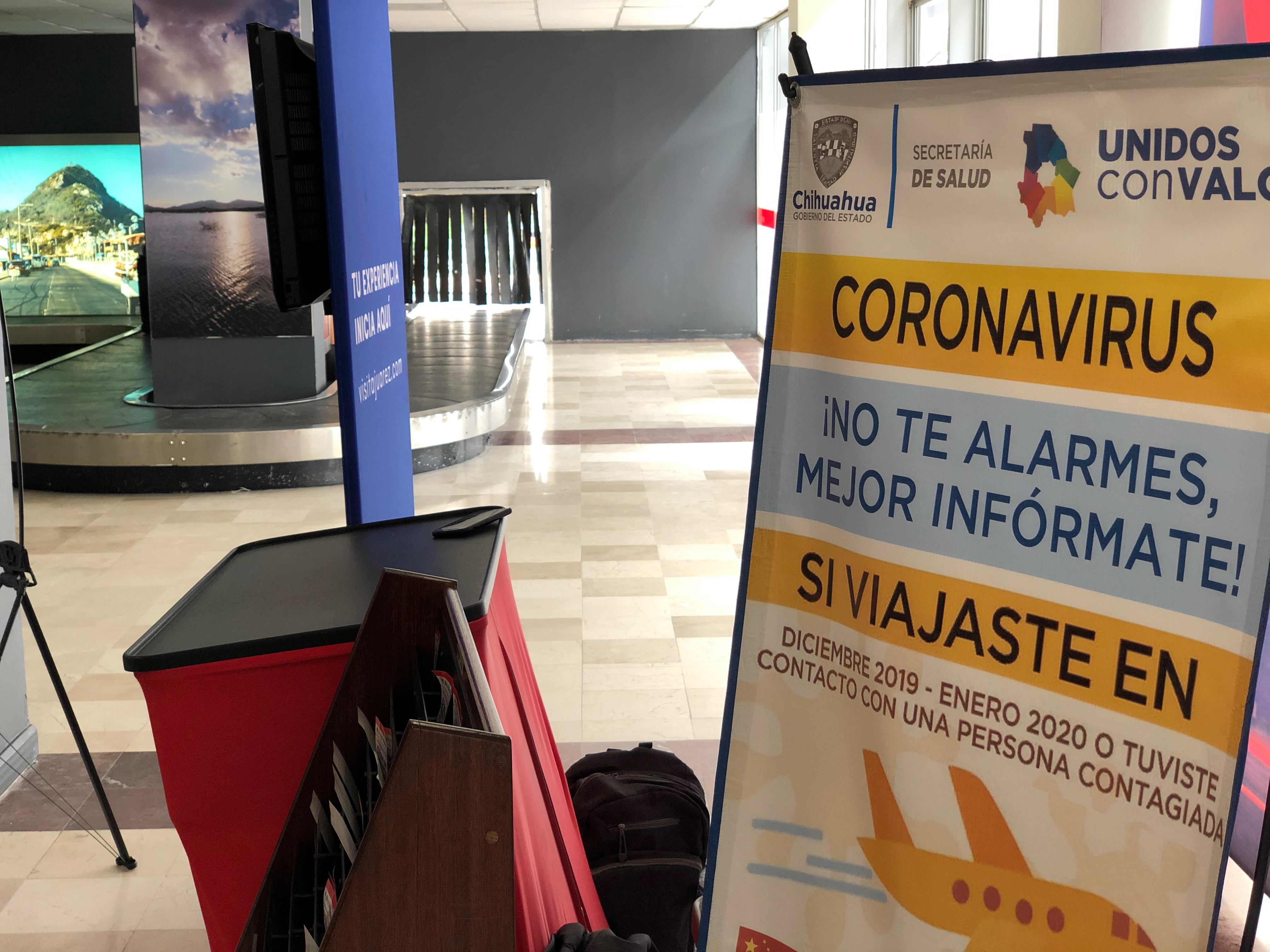 CD. JUAREZ, CHIH.- Personal médico de Gobierno del Estado perteneciente a la Secretaría de Salud estatal dio a conocer que pasajeros que arriban a la terminal aérea de Ciudad Juárez, desde el día lunes pasado, han respondido positivamente en el Módulo de Información sobre nuevo Coronavirus instalado en el área de entrega de equipaje.