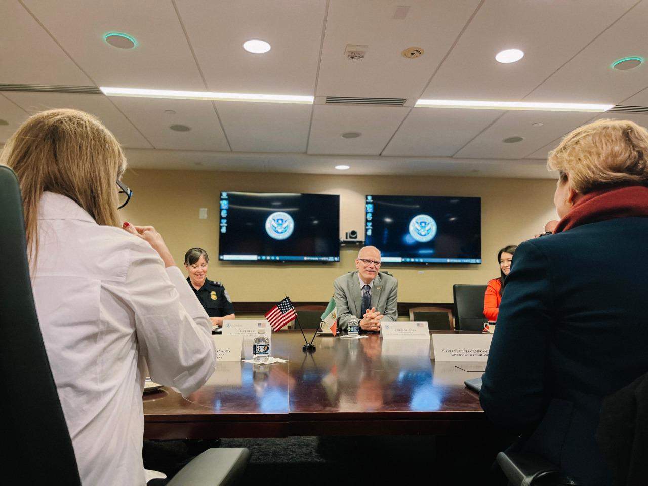 WASHINGTON, ESTADOS UNIDOS.- En seguimiento al plan de trabajo de la Gobernadora del Estado en Washington, Estados Unidos, la titular del Ejecutivo en compañía de miembros del gabinete del Gobierno del Estado, sostuvieron una reunión Chris Magnus, Comisionado de Aduanas y Protección Fronteriza del país vecino para reforzar la seguridad binacional en la frontera de México y Estados Unidos.