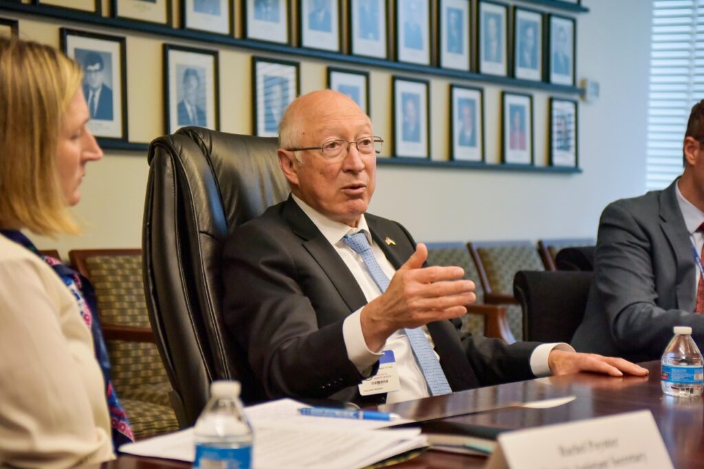 WASHINGTON, ESTADOS UNIDOS.- Con el fin de atender la seguridad fronteriza en materia de modernización de operativos con las nuevas estrategias del Gobierno del Estado, la Gobernadora del Estado de Chihuahua se reunió con el embajador de Estados Unidos en México, Ken Salazar en la ciudad de Washington en Estados Unidos en el marco de la gira de trabajo de la mandataria por este país.