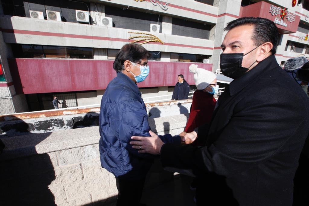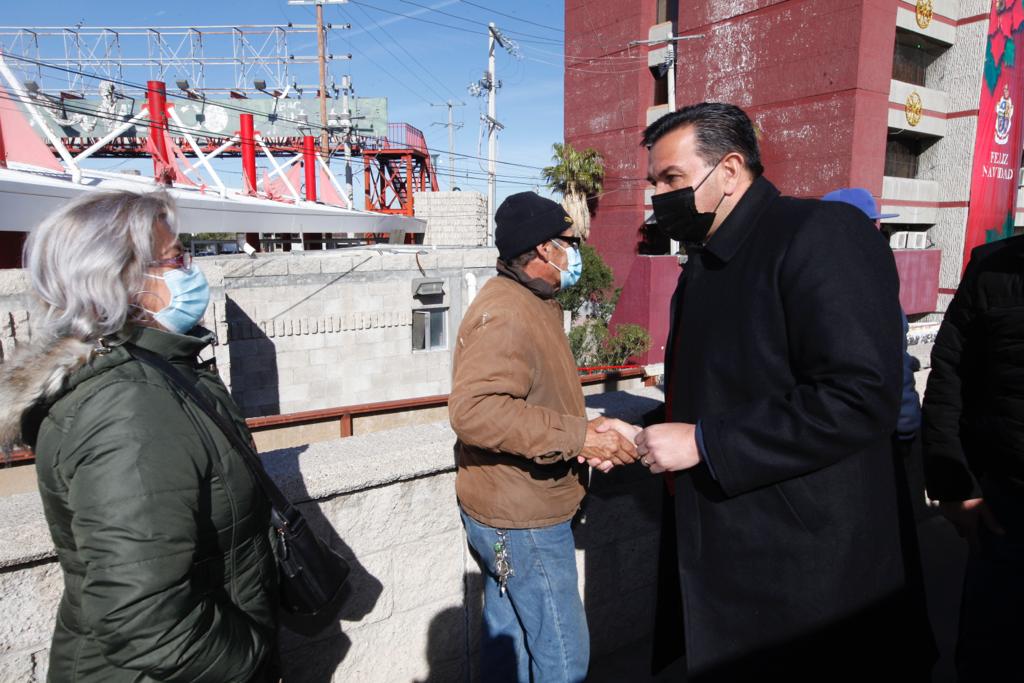 Pérez Cuéllar saludo a los y las juarenses que esperaban su turno y agradeció personalmente su disposición.