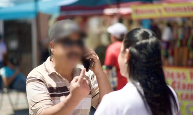 CD. JUAREZ, CHIH.- La candidata a la diputación local por el distrito 03 de la coalición Juntos Defendamos Chihuahua Aldonza González denunció que la tarde del domingo, fue agredida y amenazada verbalmente junto con un grupo de brigadistas que se encontraban en actividad de promoción política en las inmediaciones de la Plaza de Armas, por un sujeto que aseguraba notificar la presencia de la candidata a otra persona vía telefónica.