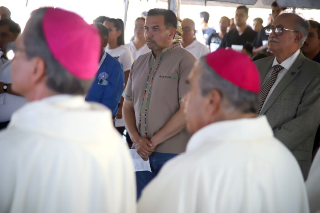 CD. JUAREZ, CHIH.- El Presidente Municipal, Cruz Pérez Cuéllar, participó en la misa y convivencia celebrada en la Casa del Migrante, como parte del «Encuentro de Obispos Tex-Mex», el cual reúne a destacadas autoridades eclesiásticas con el objetivo de abordar el fenómeno migratorio que afecta a ambos países.