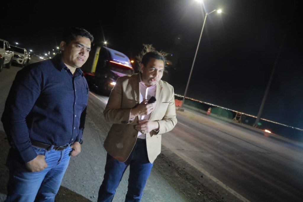 CD. JUAREZ, CHIH.- El Presidente Municipal, Cruz Pérez Cuéllar hizo un recorrido nocturno a lo largo de la ruta que recorrerá el Sistema de Transporte BRT II, donde la Dirección de Servicios Públicos reparó e instaló las luminarias en todo este trayecto.