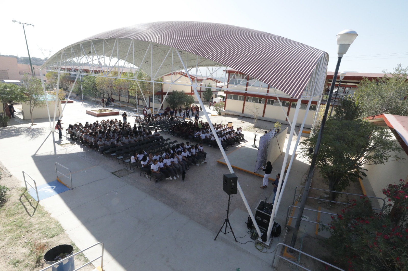 CD. JUAREZ, CHIH.- El Presidente Municipal, Cruz Pérez Cuéllar, entregó de manera oficial un domo a la población escolar del Centro de Bachillerato Tecnológico Industrial y de Servicios (CBTIS) 269.