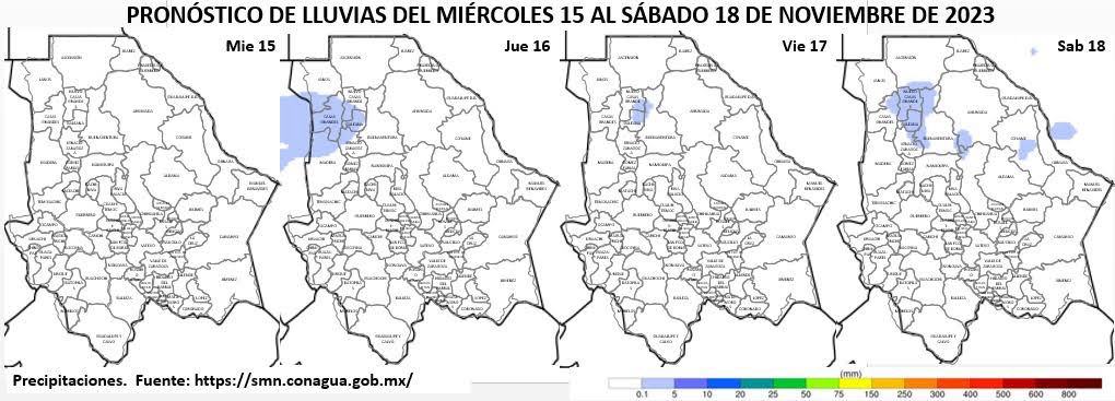 Para mañana jueves 16 de noviembre, las temperaturas esperadas para este día son (máx/min °C): Chihuahua 25/12, Juárez 23/11, Janos 20/7, Madera 20/6, Temósachic 22/4, Cuauhtémoc 23/8, Ojinaga 25/11, Delicias 25/11, Camargo 24/10, Jiménez 23/10, Parral 24/10, Creel 21/4, Chínipas 32/19, Guachochi 21/4, El Vergel 20/3.