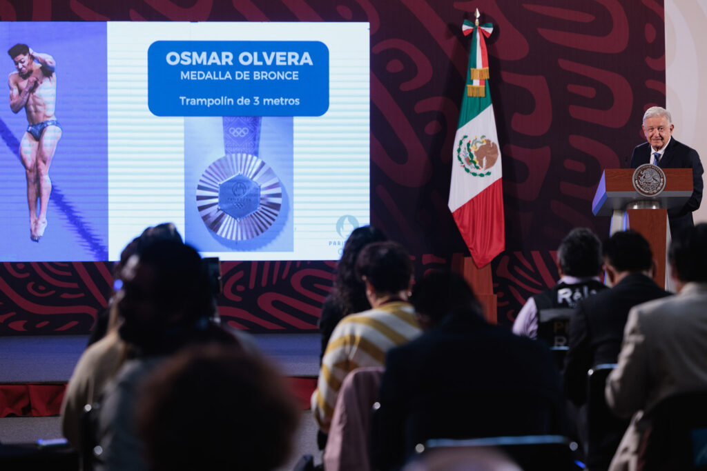 CIUDD DE MEXICO.-El presidente Andrés Manuel López Obrador felicitó al clavadista mexicano, Osmar Olvera, por ganar medalla de bronce este jueves en la prueba individual de trampolín de 3 metros en los Juegos Olímpicos de París 2024.