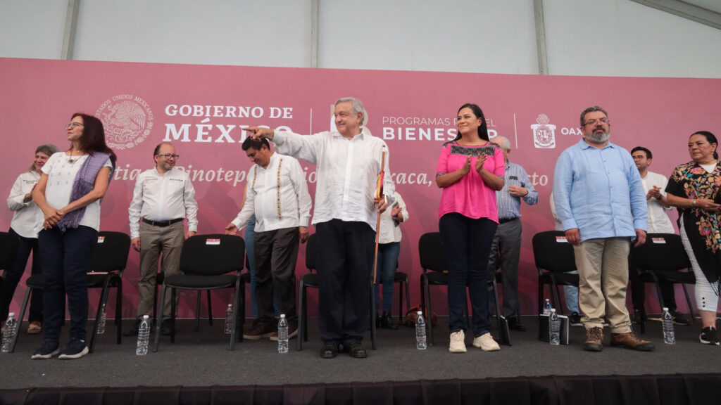 Durante el evento, la secretaria de Bienestar, Ariadna Montiel Reyes, informó que en Oaxaca se beneficia a un millón 279 mil personas con los Programas para el Bienestar, esto implica una inversión de 38 mil millones de pesos.