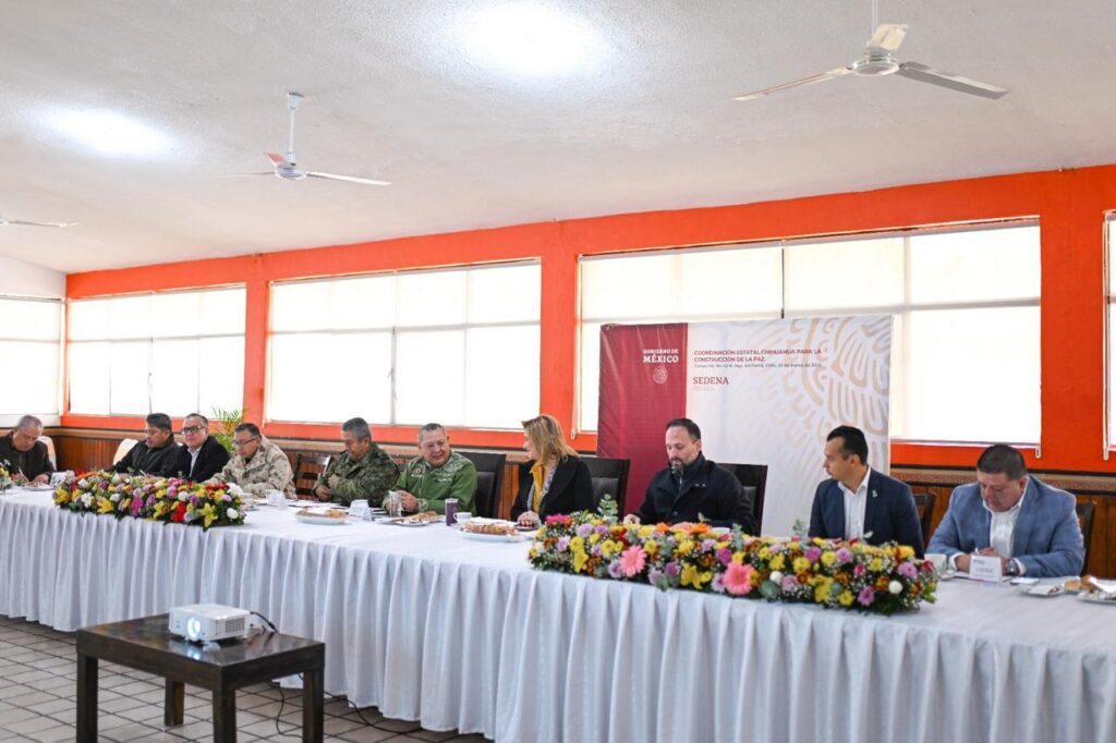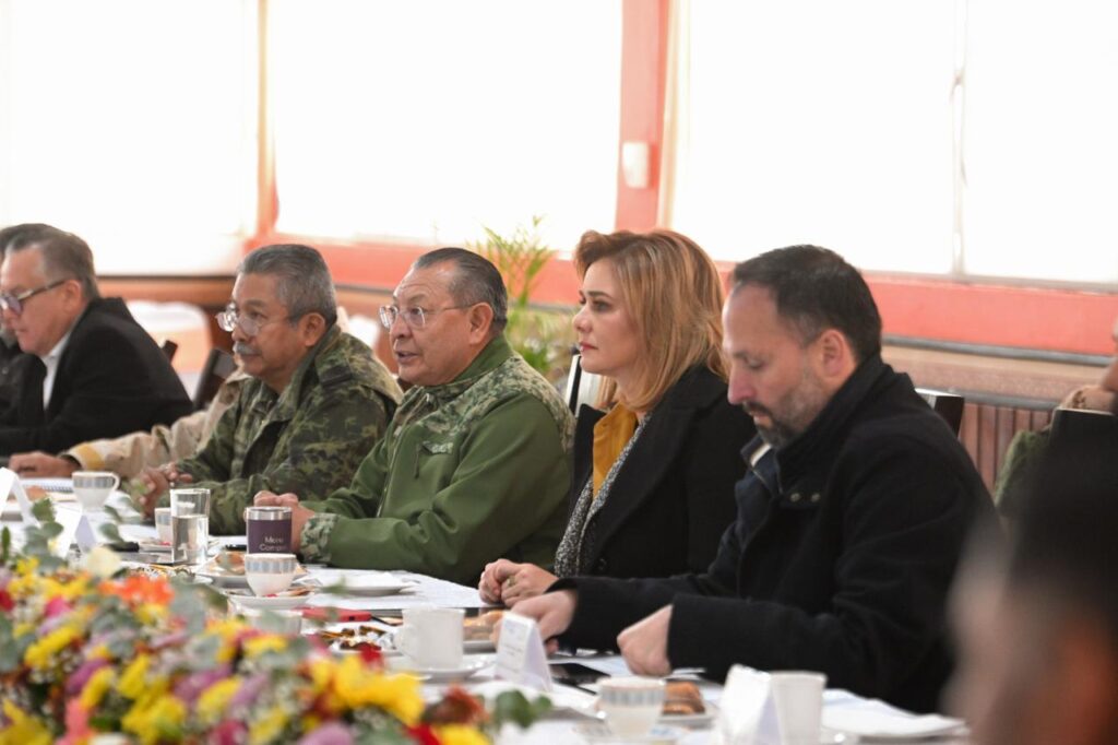 PARRAL, CHIH.- La gobernadora del Estado, Maru Campos, encabezó la Mesa Estatal de Seguridad en Parral, que se realizó en las instalaciones de la 42ª Zona Militar, reunión a la cual se dieron cita funcionarios de los tres órdenes de Gobierno.