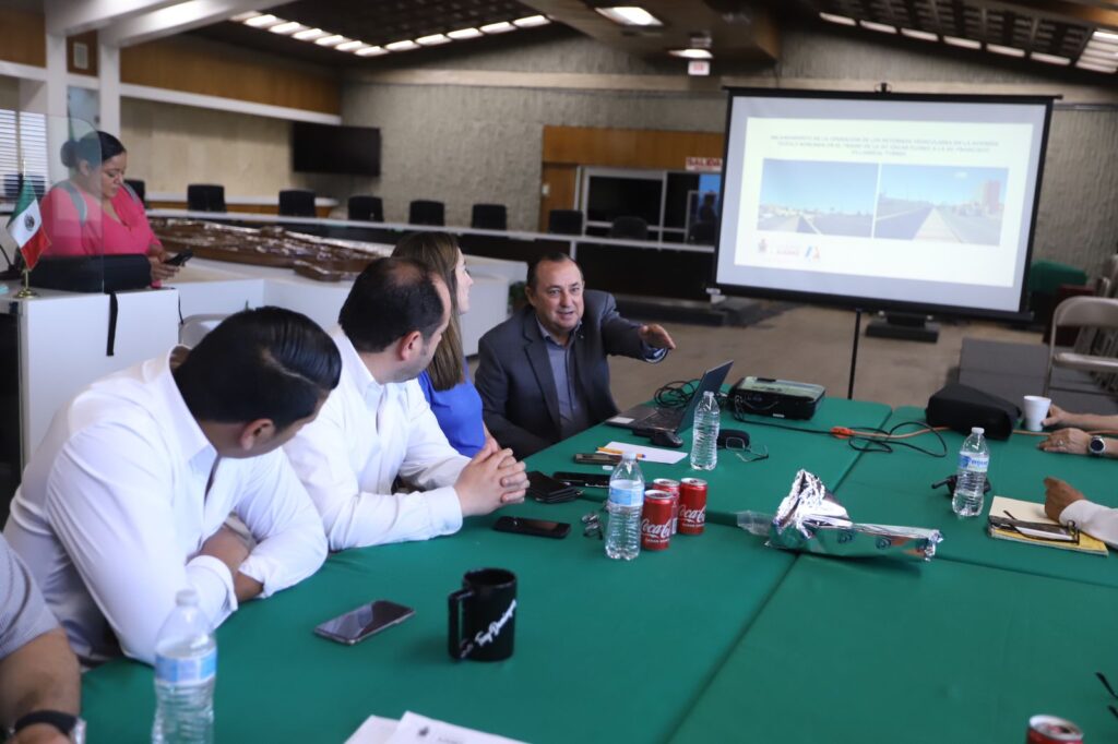 CD. JUAREZ, CHIH.- Las Comisiones Edilicias conjuntas de Obras Públicas y Seguridad Pública se reunieron esta tarde con el director del Instituto Municipal de Investigación y Planeación (IMIP), Roberto Mora Palacios, para analizar medidas y acciones para un mejor tránsito en las vueltas de la avenida Teófilo Borunda y la calle Del Bosque.