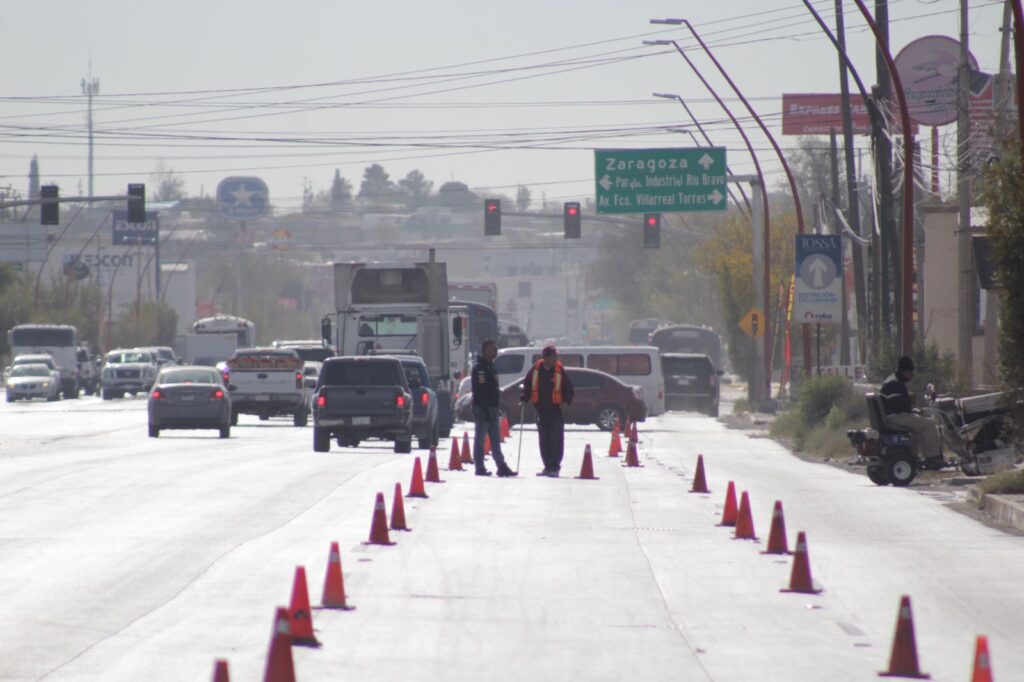 CD. JUAREZ, CHIH.- Como parte del programa Cruzada por la Mejora Vial, personal de Control de Tráfico de la Coordinación General de Seguridad Vial aplicó pintura termoplástica para delimitar los carriles de circulación vehicular en la avenida Manuel Gómez Morín, en el tramo comprendido por Prolongación Teófilo Borunda y Manuel J. Clouthier.