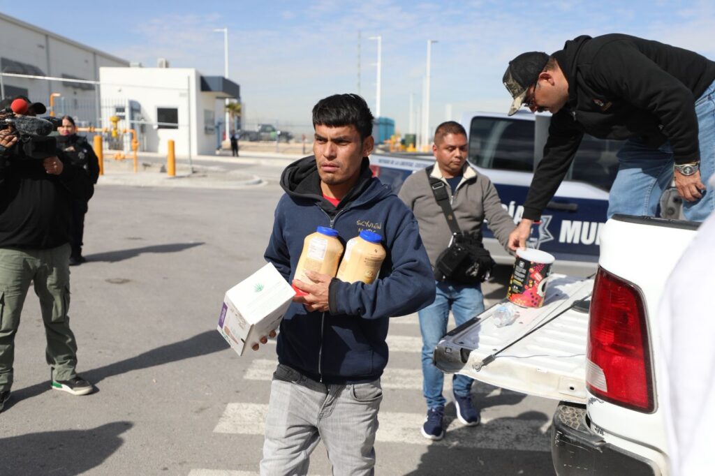 CD. JUAREZ, CHIH.- Personal de la Coordinación de Atención Ciudadana del Municipio visitó este día a las personas que trabajaron en cuatro maquiladoras situadas al suroriente de la ciudad y que suspendieron sus operaciones días atrás, llevándoles alimentos y bebidas.