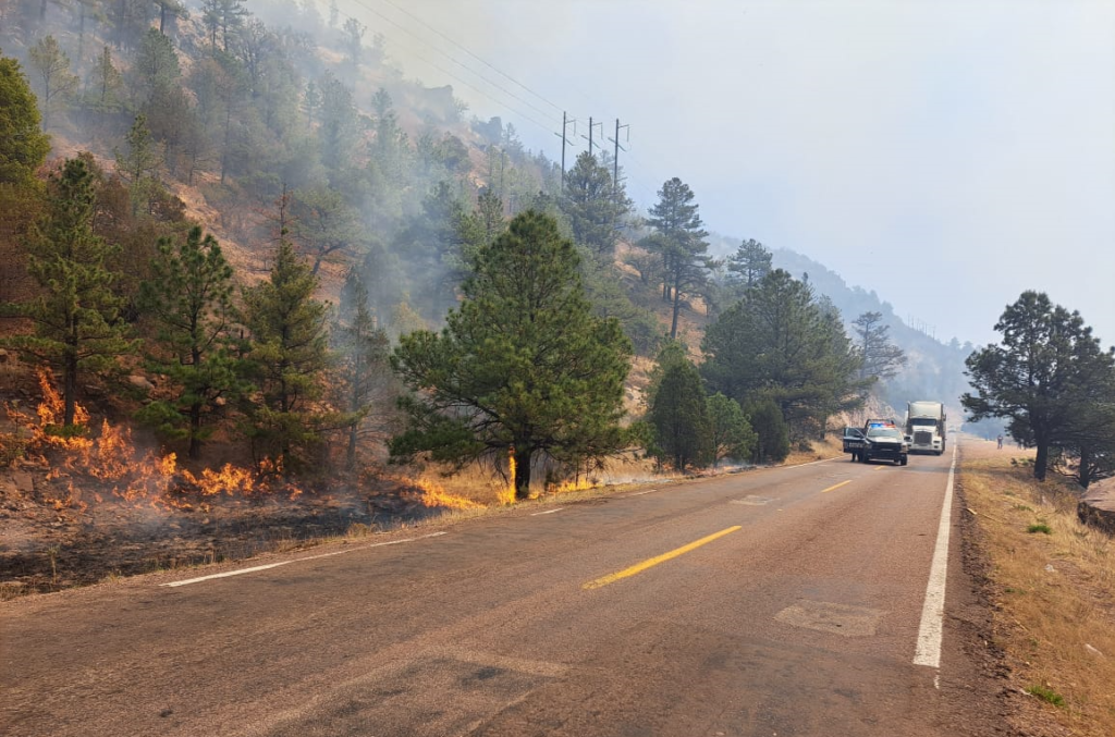 Los elementos se apostaron sobre la carretera que comunica al poblado de la Junta con el municipio de Bocoyna, para controlar el tránsito vehicular mientras las cuadrillas trabajaron en la primera línea de batalla contra el fuego, cerca de la localidad de El Nogal.