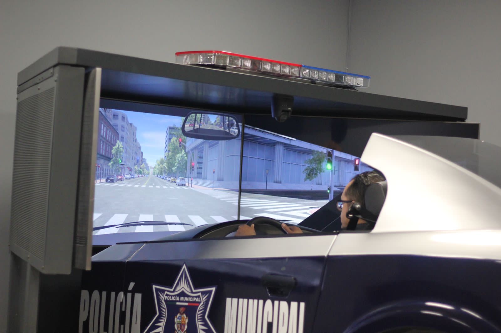 El instructor certificado en conducción de vehículos de la Academia de Policía, Félix Nevárez, mostró un simulador de conducción de la Academia de Policía donde el personal operativo practica como si estuviera en una unidad oficial y se registra alguna incidencia. El objetivo es detectar los errores que pueda cometer el conductor para que los corrija y evite accidentes en la práctica real.