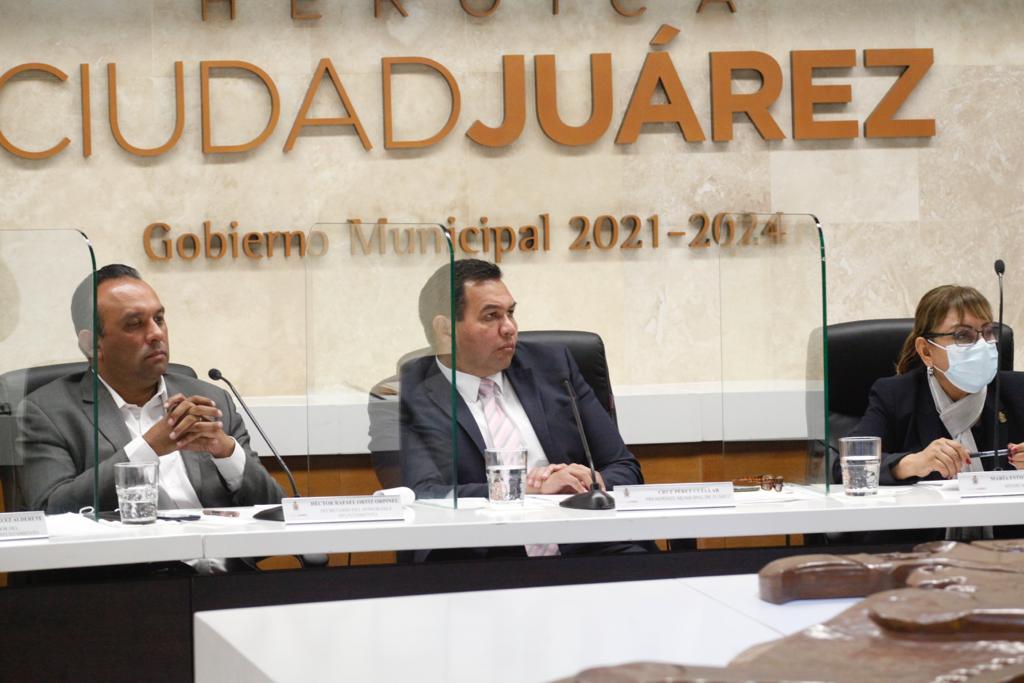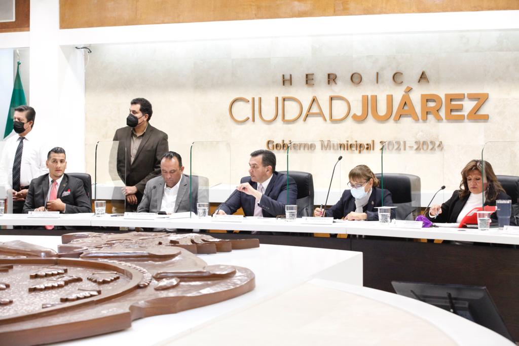 CD. JUAREZ, CHIH.- En sesión ordinaria número 5, el Cabildo de Juárez discutió 13 asuntos para su aprobación, entre los que se encuentra la otorgación de un apoyo de 100 mil pesos para la compra de medicamento, a familias de niños con cáncer, así como la instalación de un Consejo de Administración de El Chamizal y la toma de protesta al director del Instituto Municipal de la Juventud, Raúl Fajardo.