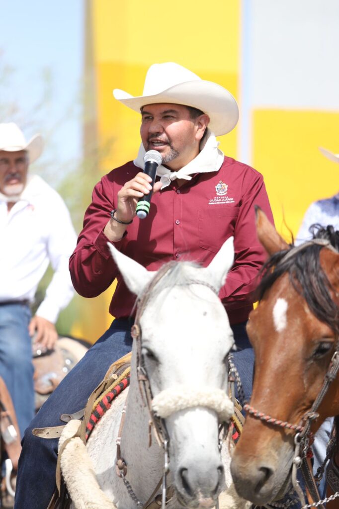 El coordinador de la cabalgata, José Miguel Salcido Romero, entregó un reconocimiento al Presidente Municipal por su respaldo, ya que el edil ofreció el apoyo para iniciar con este importante evento que honra la historia del estado de Chihuahua.