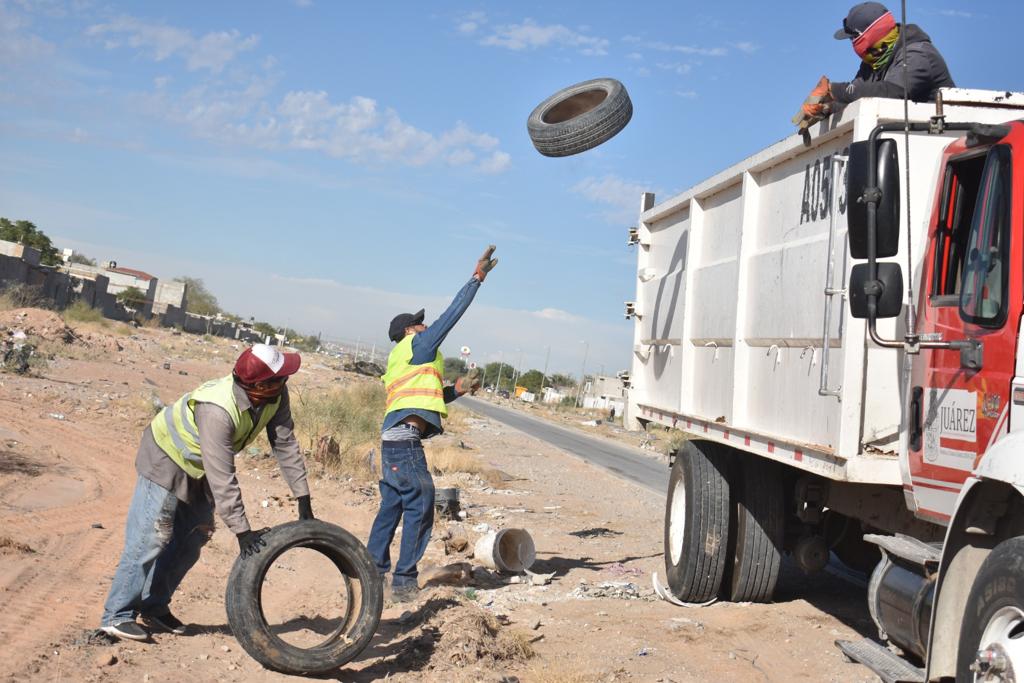 CD. JUAREZ, CHIH.- Personal de la Dirección de Limpia inició este día con un operativo de limpieza de terrenos y fincas abandonadas en distintos puntos de la ciudad; las labores empezaron en la calle libramiento regional, cubriendo las laterales y el camellón central.