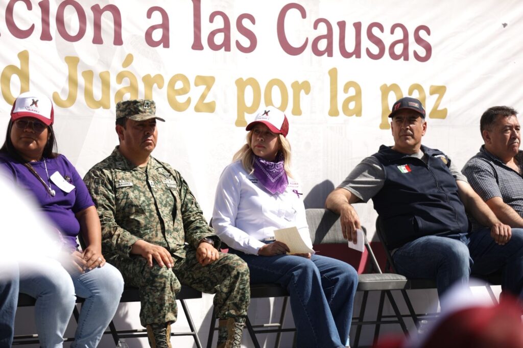 En representación del presidente municipal Cruz Pérez Cuéllar, la síndica municipal Ana Carmen Estrada destacó que las Cruzadas por Juárez: Atención a las Causas son un programa que se desarrolla en coordinación entre el Gobierno Federal y el Gobierno Municipal para atender directamente en territorio las necesidades de la población.