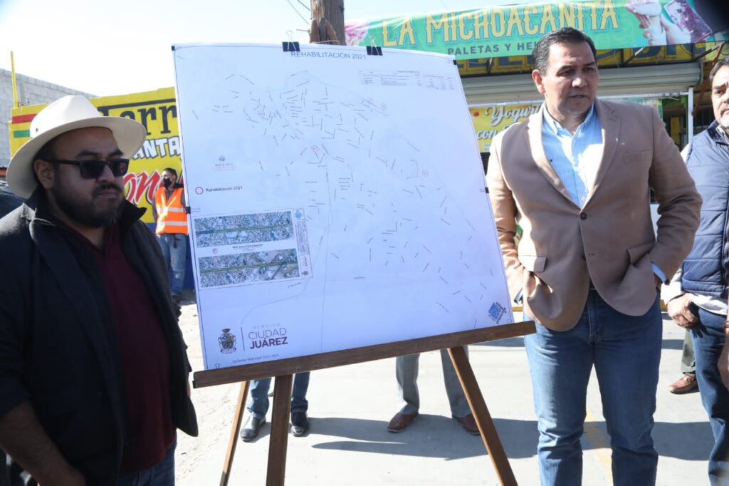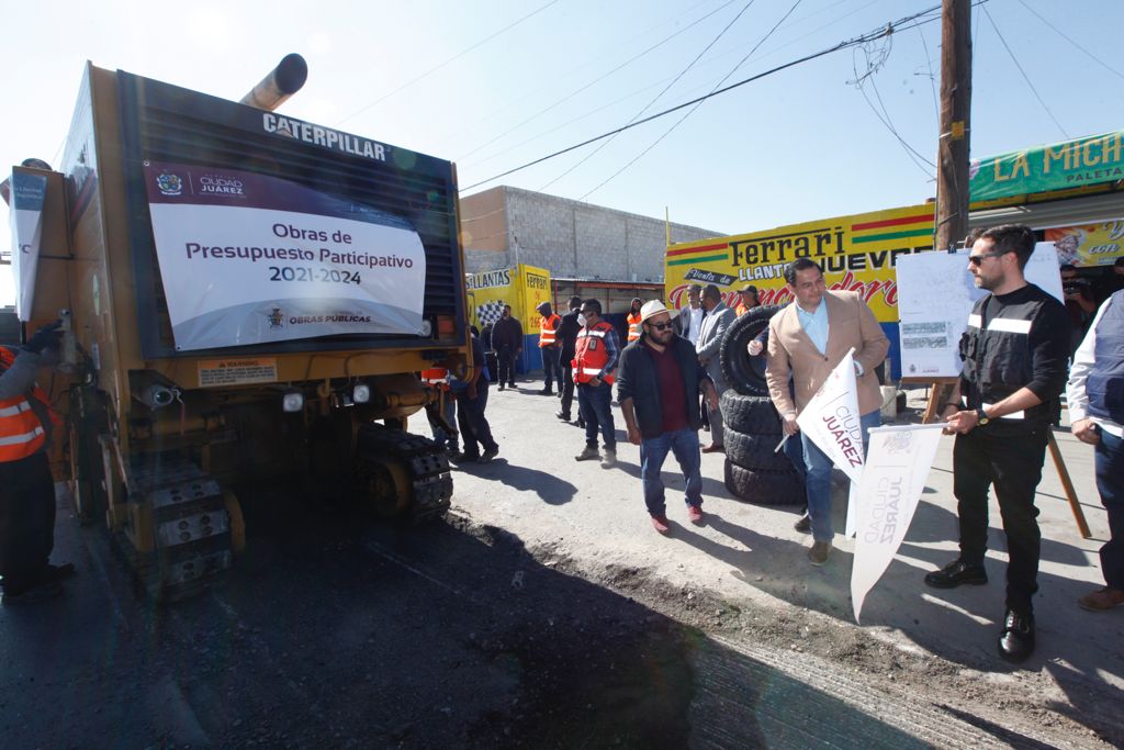 CD. JUAREZ, CHIH.- Con el objetivo de mejorar las condiciones de las vialidades en Ciudad Juárez, el Presidente Municipal Cruz Pérez Cuéllar, dio el banderazo de arranque a las obras de fresado y recarpeteo en el bulevar Óscar Flores.
