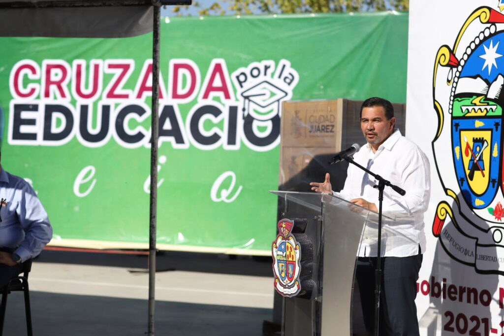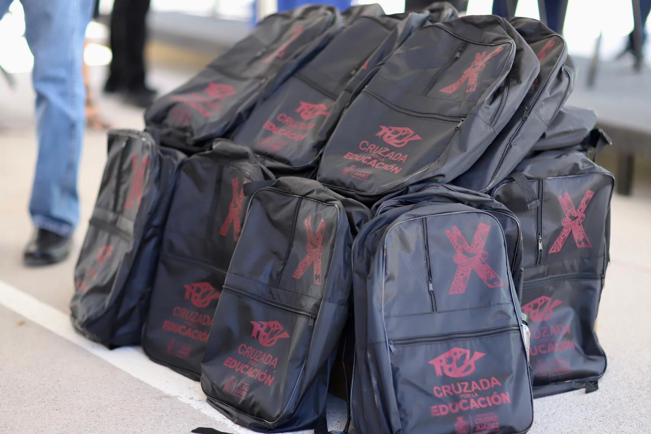 CD. JUAREZ, CHIH.- Como parte de la Cruzada por la Educación, el Presidente Municipal, Cruz Pérez Cuéllar, dio inicio a la entrega de 150 mil mochilas y útiles escolares a estudiantes de escuelas públicas de la ciudad.
