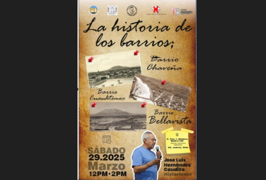 CD. JUAREZ, CHIH.– El próximo sábado 29 de marzo darán inicio el ciclo 2025 de Las Charlas de identidad juarense, comenzando con el tema «La Historia de los Barrios», platica que ofrecer el historiado juarense José Luis Hernández Caudillo.