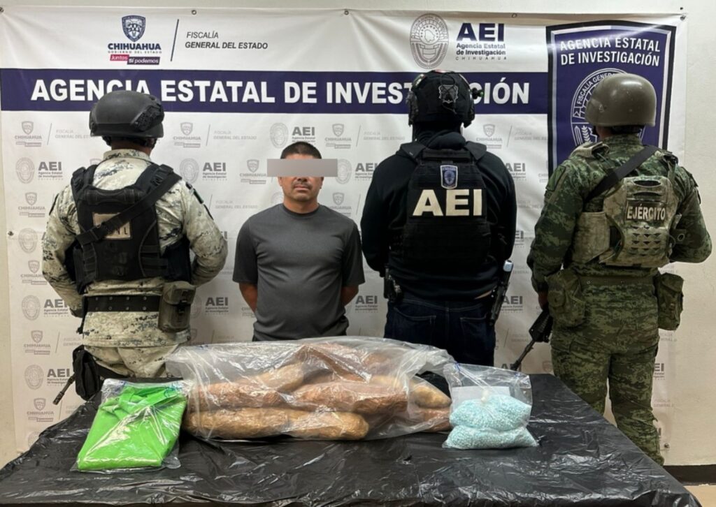 CD. JUAREZ, CHIH.- Elementos de la Agencia Estatal de Investigación, detuvieron en los términos de la flagrancia, a Rigoberto A. V., por su presunta responsabilidad en delitos contra la salud, registrado en Ciudad Juárez.