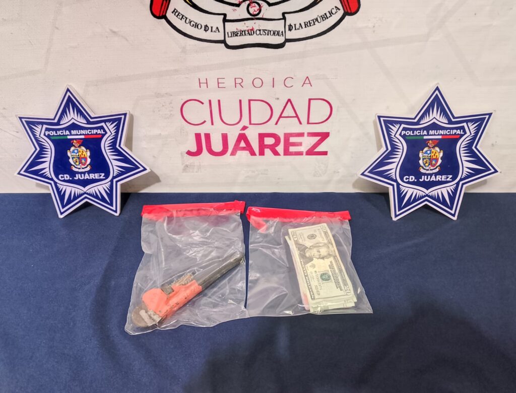 Por lo que entre varias personas que se encontraban en el local lograron someter al presunto ladrón y retenerlo hasta el arribo de los oficiales, quienes le aseguraron una llave stilson, herramienta que utilizó para simular que era un arma, y dinero en efectivo, por lo que, ante el señalamiento directo, procedieron con su arresto.