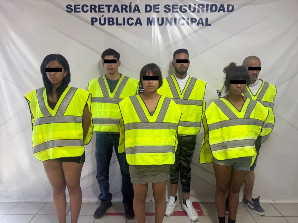CD. JUAREZ, CHIH.- Elementos de la Secretaría de Seguridad Pública Municipal arrestaron a Manuel Sergio H. R., Joel Z. V., María Isabel H. S., Febe Joadan B. L, Edgar Iván A. T. y Alexia Alejandra M. C., por su presunta responsabilidad en la comisión de delitos contra la salud y resistencia y desobediencia de particulares; una de las detenidas será investigada por el delito de secuestro.