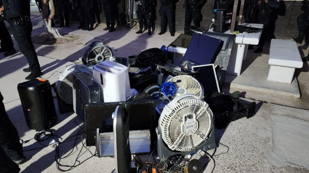 También se aseguraron envoltorios de droga, alimentos diversos, medicamentos y aparatos electrónicos como aires acondicionados, televisores, videojuegos y juegos de mesa.