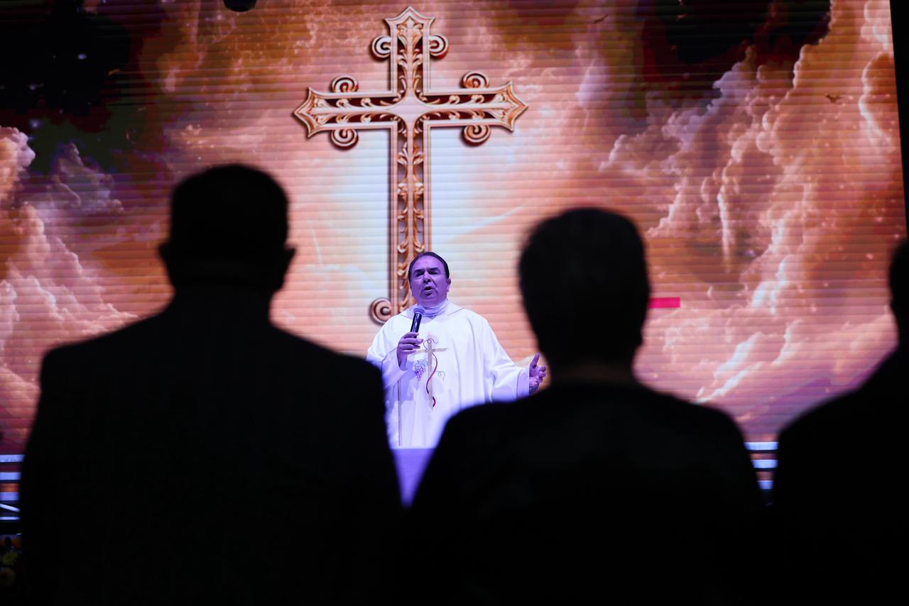 CD. JUAREZ, CHIH.- Como parte de las actividades por el Día del Policía, el Presidente Municipal, Cruz Pérez Cuéllar, acudió a la celebración eucarística dedicada a las y los elementos de la Secretaría de Seguridad Pública Municipal, la cual se llevó a cabo en el Centro de Convenciones Anitas.