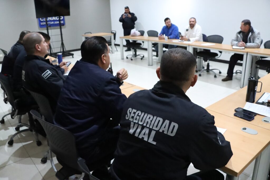 CD. JUAREZ, CHIH.- La Secretaría de Seguridad Pública Municipal asistió a la última reunión ordinaria del presente año con los Corredores Comerciales Seguros, la cual tuvo sede en las instalaciones de la Cámara Nacional de Comercio (CANACO), en la zona Pronaf.