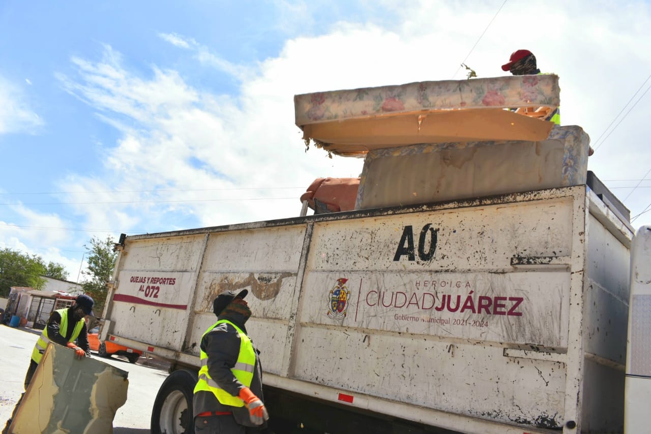CD. JUAREZ, CHIH.– Durante tres días, trabajadores de la Dirección de Limpia atendieron 1,300 hogares con el recorrido de destilichadero en las colonias La Cañada y La Cuesta, sectores en donde recabaron 17.3 toneladas de artículos en desuso.
