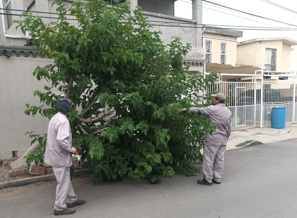 CD. JUAREZ, CHIH.- La Dirección General de Servicios Públicos Municipales, a través de la Dirección de Parques y Jardines, atendió varios reportes ciudadanos durante la semana, debido a las lluvias y viento que se registraron en los últimos días.