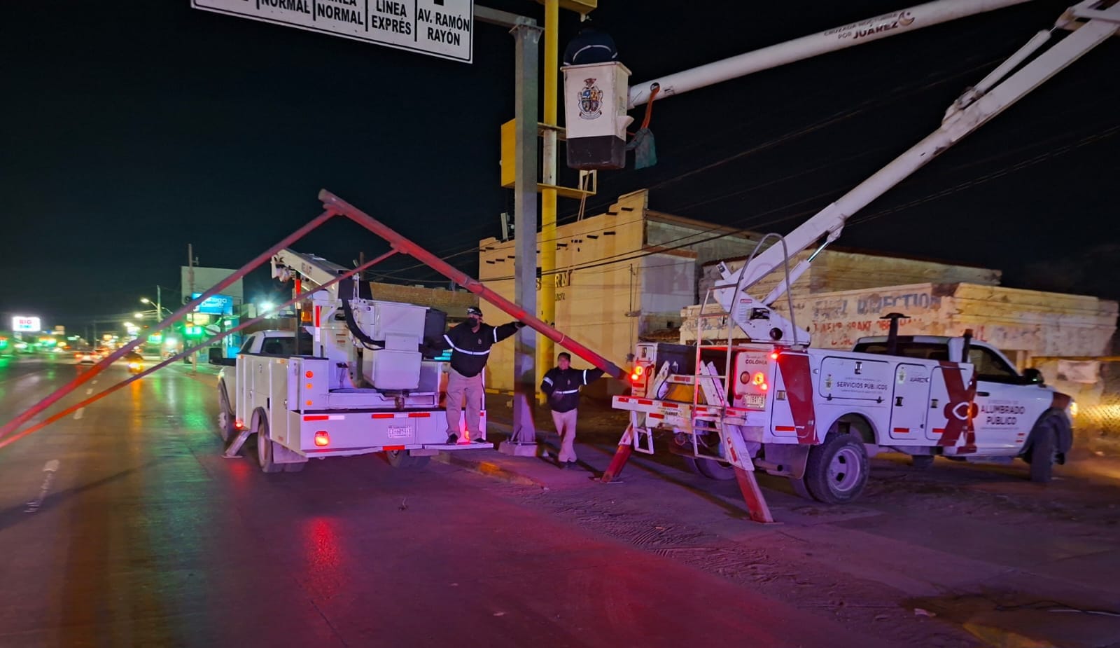 CD. JUAREZ, CHIH.- La Dirección de Alumbrado Público atendió 10 reportes por afectaciones en infraestructura urbana registrados en distintos puntos de la ciudad, como consecuencia de los fuertes vientos que se presentaron ayer.