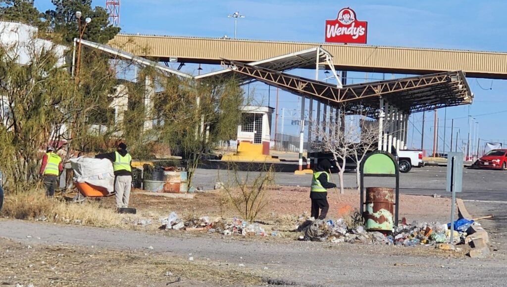 CD. JUAREZ, CHIH.- La Dirección de Limpia trabajó esta semana en el aseo y mantenimiento de la garita de la Aduana, la cual se ubica sobre la carretera Panamericana, dio a conocer Gibran Solís Kanahan, titular de la dependencia.