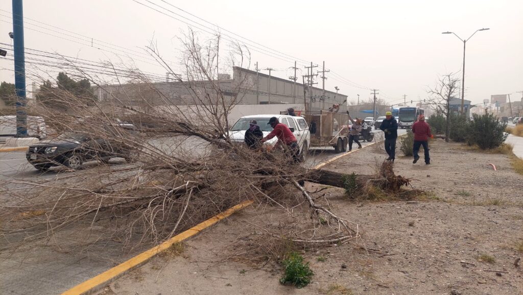CD. JUAREZ, CHIH.- La Dirección de Parques y Jardines atendió alrededor de 60 reportes ciudadanos derivados de los fuertes vientos que se registraron ayer, los cuales provocaron la caída de ramas y árboles, así como afectaciones en áreas verdes en distintos sectores de la ciudad.