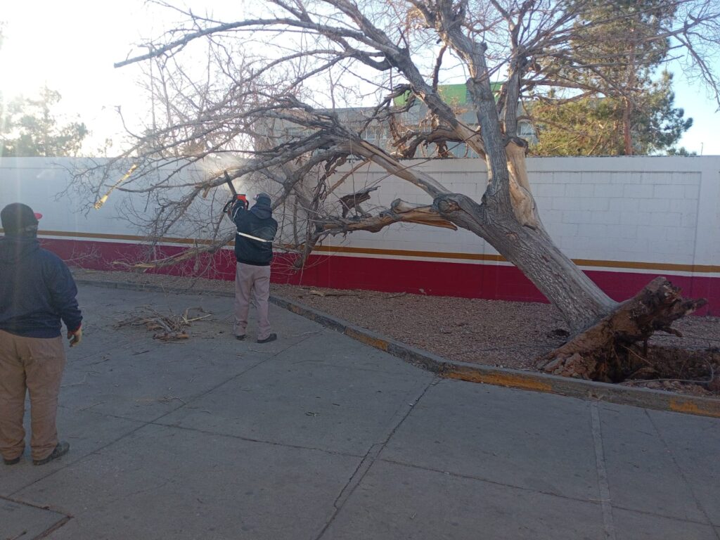 CD. JUAREZ, CHIH.- La Dirección de Parques y Jardines atendió alrededor de 60 reportes ciudadanos derivados de los fuertes vientos que se registraron ayer, los cuales provocaron la caída de ramas y árboles, así como afectaciones en áreas verdes en distintos sectores de la ciudad.