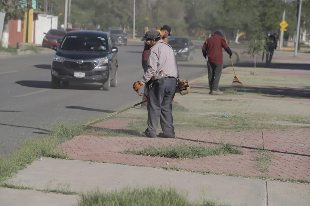 CD. JUAREZ, CHIH.- Con el objetivo de mejorar la imagen urbana y brindar espacios más limpios y seguros a la ciudadanía, personal de la Dirección de Parques y Jardines llevó a cabo trabajos de mantenimiento en el camellón central de la calle Laguna de Tamiahua y avenida Tomás Fernández.