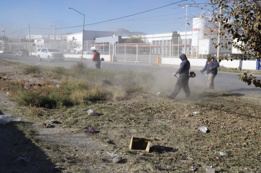 CD. JUAREZ, CHIH.- Con el objetivo de mejorar la imagen urbana y mantener en óptimas condiciones los espacios públicos, se llevan a cabo labores integrales de mantenimiento en el camellón central de la calle Parque Industrial Juárez.