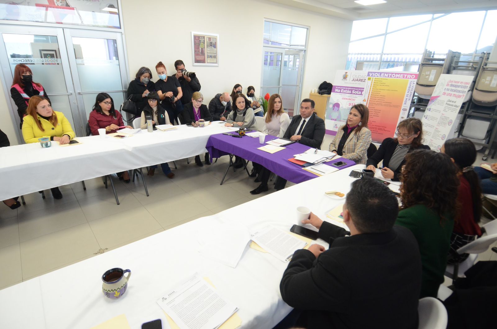 Elvira Urrutia Castro, directora general del Instituto Municipal de las Mujeres (IMM), indicó que el Gobierno Municipal de Ciudad Juárez fue el primero en instalar la Mesa de Trabajo por Alerta de Género, además de integrar las recomendaciones de la Conavim en su Plan Municipal de Desarrollo, entre ellas contar con equipo especializado formado por psicólogas, trabajadoras sociales y abogados que apoyen a las mujeres víctimas de la violencia, quienes brindan sus servicios de forma gratuita en el Instituto Municipal de las Mujeres (IMM).