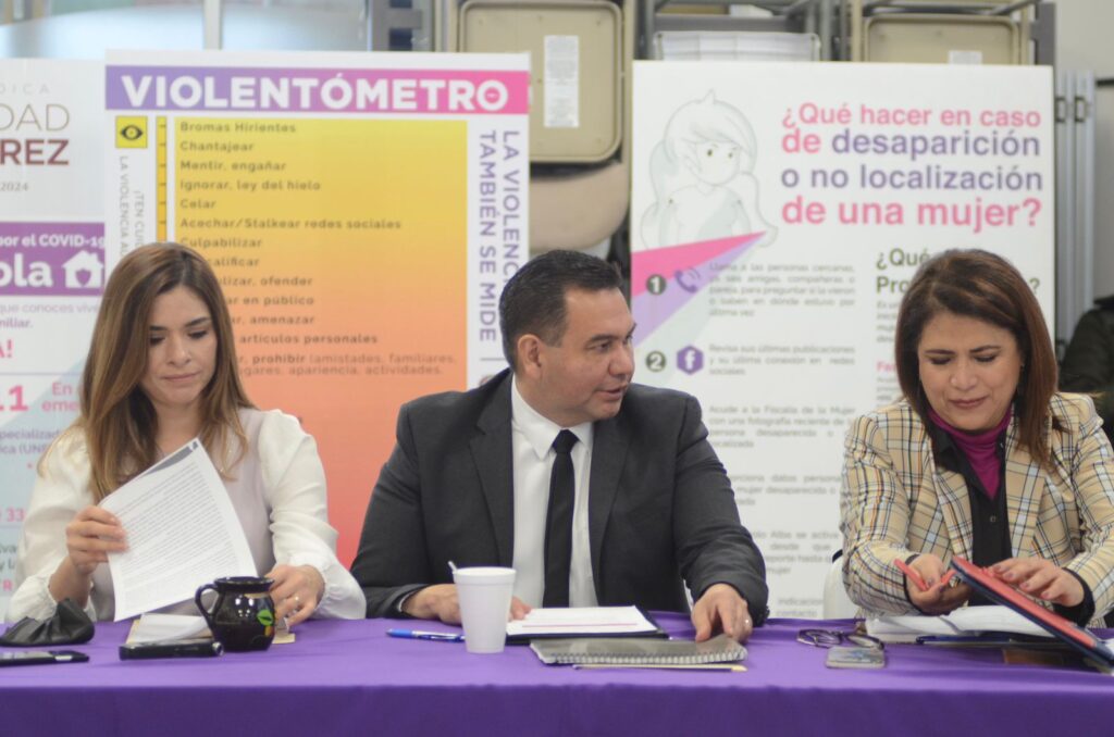 CD. JUAREZ, CHIH.- El Presidente Municipal, Cruz Pérez Cuéllar, y su esposa y titular del DIF Municipal, Rubí Enríquez, encabezaron la Mesa de Trabajo por Alerta de Género que se llevó a cabo con Fabiola Alanís Sámano, titular de la Comisión Nacional para Prevenir y Erradicar la Violencia Contra las Mujeres (Conavim) y funcionarios municipales.