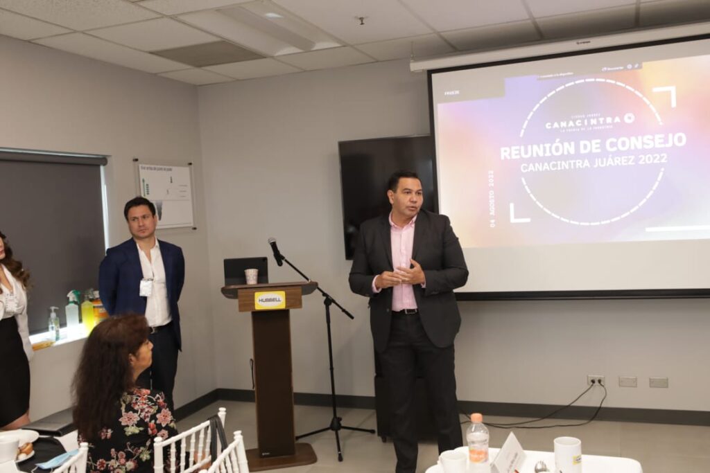 CD. JUAREZ, CHIH.- El Presidente Municipal, Cruz Pérez Cuéllar, acudió a la reunión del consejo de la Cámara Nacional de la Industria de Transformación (CANACINTRA), donde atendió a los agremiados y dio respuesta a las inquietudes que le plantearon.