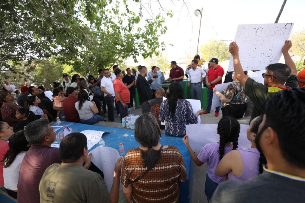 CD. JUAREZ, CHIH.- Con el compromiso de escuchar de cerca las peticiones de los ciudadanos, el Presidente Municipal, Cruz Pérez Cuéllar, acudió esta tarde al parque de Paseo de Las Torres en donde integrantes del comité de vecinos del sector acudieron para platicar con él.
