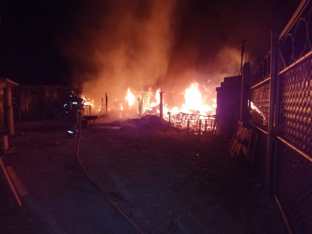 CD. JUAREZ, CHIH.- Elementos de la Dirección General de Protección Civil atendieron durante la madrugada de este 28 de marzo un incendio registrado en un predio de la colonia Tierra Nueva Etapa 2, el cual dejó daños materiales en varias viviendas.