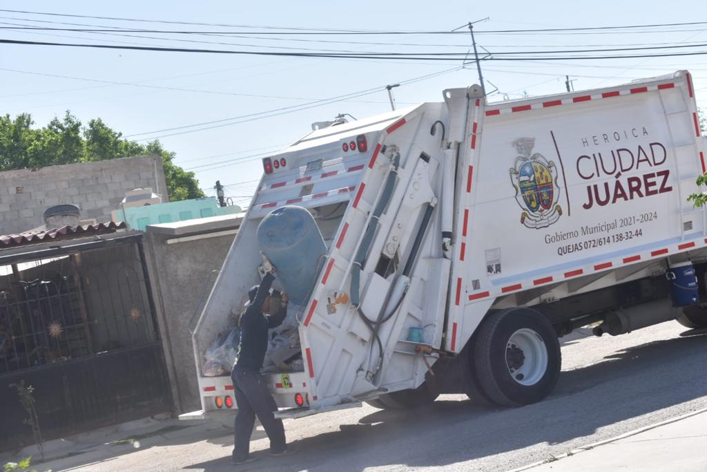 CD. JUAREZ, CHIH.- En respuesta a los reportes ciudadanos, personal de la Dirección de Limpia atiende diariamente con camiones del municipio la recolección de basura en diversas colonias de la ciudad, ante la falta del servicio por parte de Promotora Ambiental de la Laguna S.A. de C.V. (PASA).