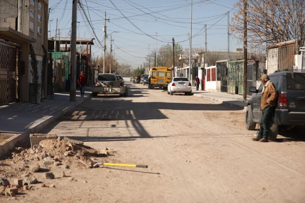 CD. JUAREZ, CHIH.- En la colonia Manuel J. Clouthier, la Dirección General de Obras Públicas avanza en los trabajos de construcción de la calle Francisco López García, en el tramo correspondiente de las calles Fray Tomas de Gallardo a Fray Antonio de Arteaga, presentando actualmente un avance del 50 por ciento en la obra.