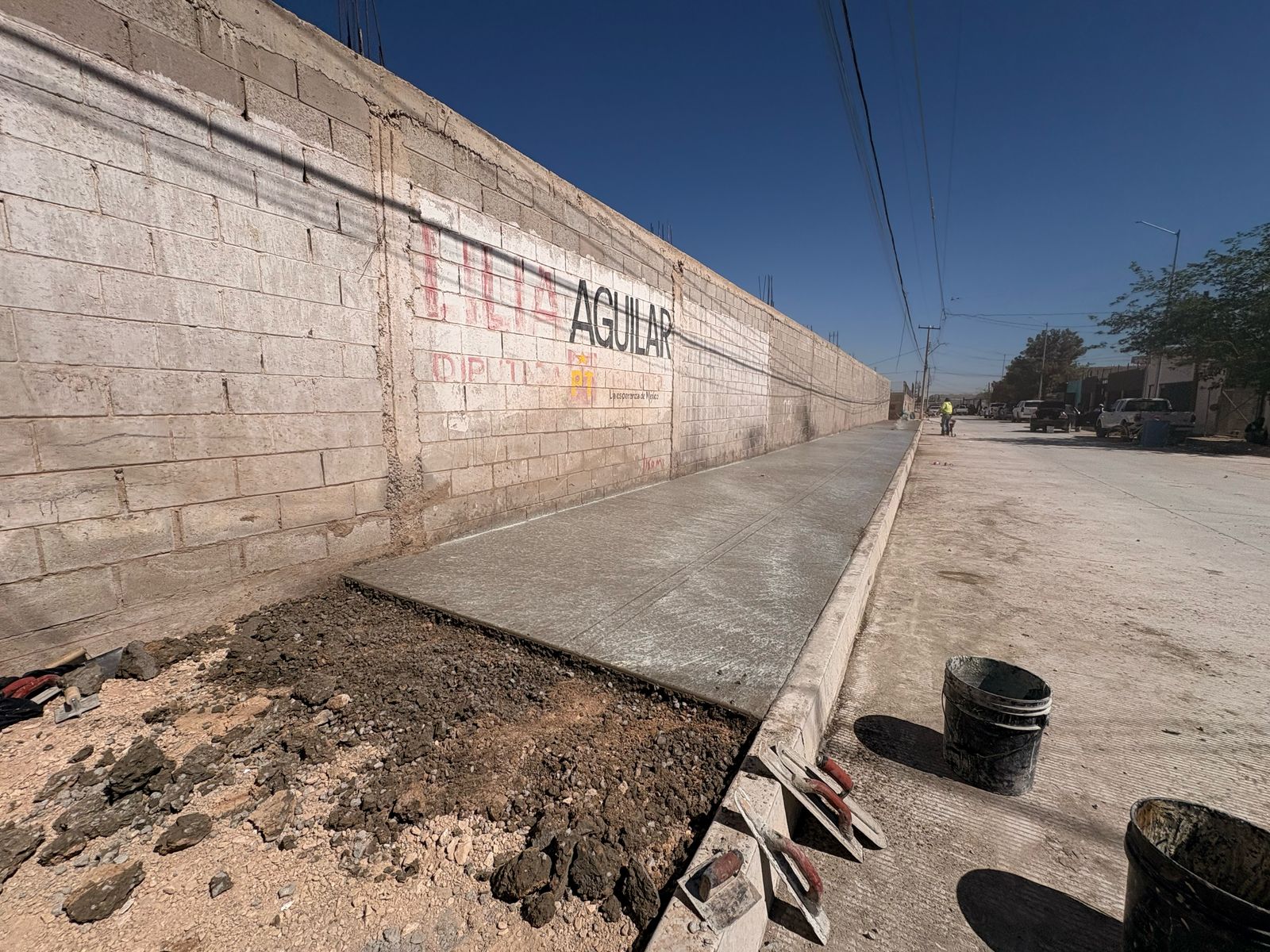 CD. JUAREZ, CHIH.- La Dirección General de Obras Públicas trabaja actualmente en la pavimentación de la calle Libia, en el tramo que abarca de las calles José Luis de Velazco a la Indonesia, en la colonia Campestre Virreyes, presentando actualmente un avance del 65 por ciento.