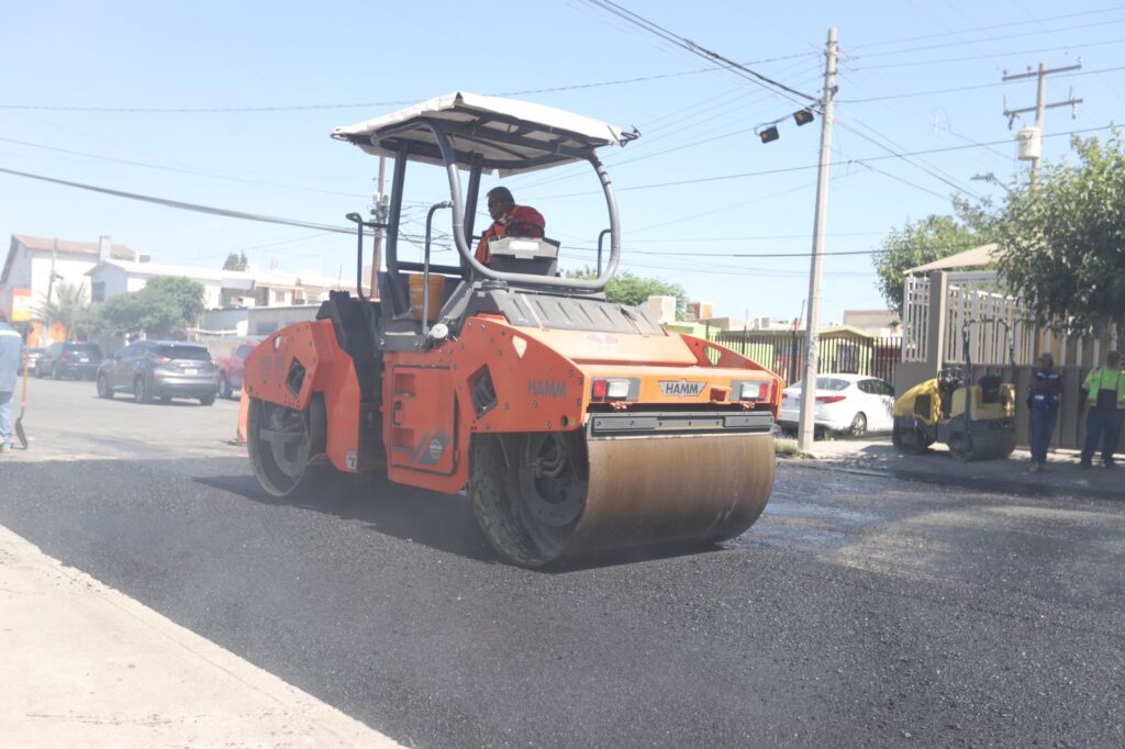 CD. JUAREZ, CHIH.- La Dirección General de Obras Públicas continúa con la repavimentación de 38 tramos de vialidades primarias y secundarias que son rehabilitadas con los recursos que recibió el Gobierno Municipal del programa de Registro Público Vehicular (REPUVE).