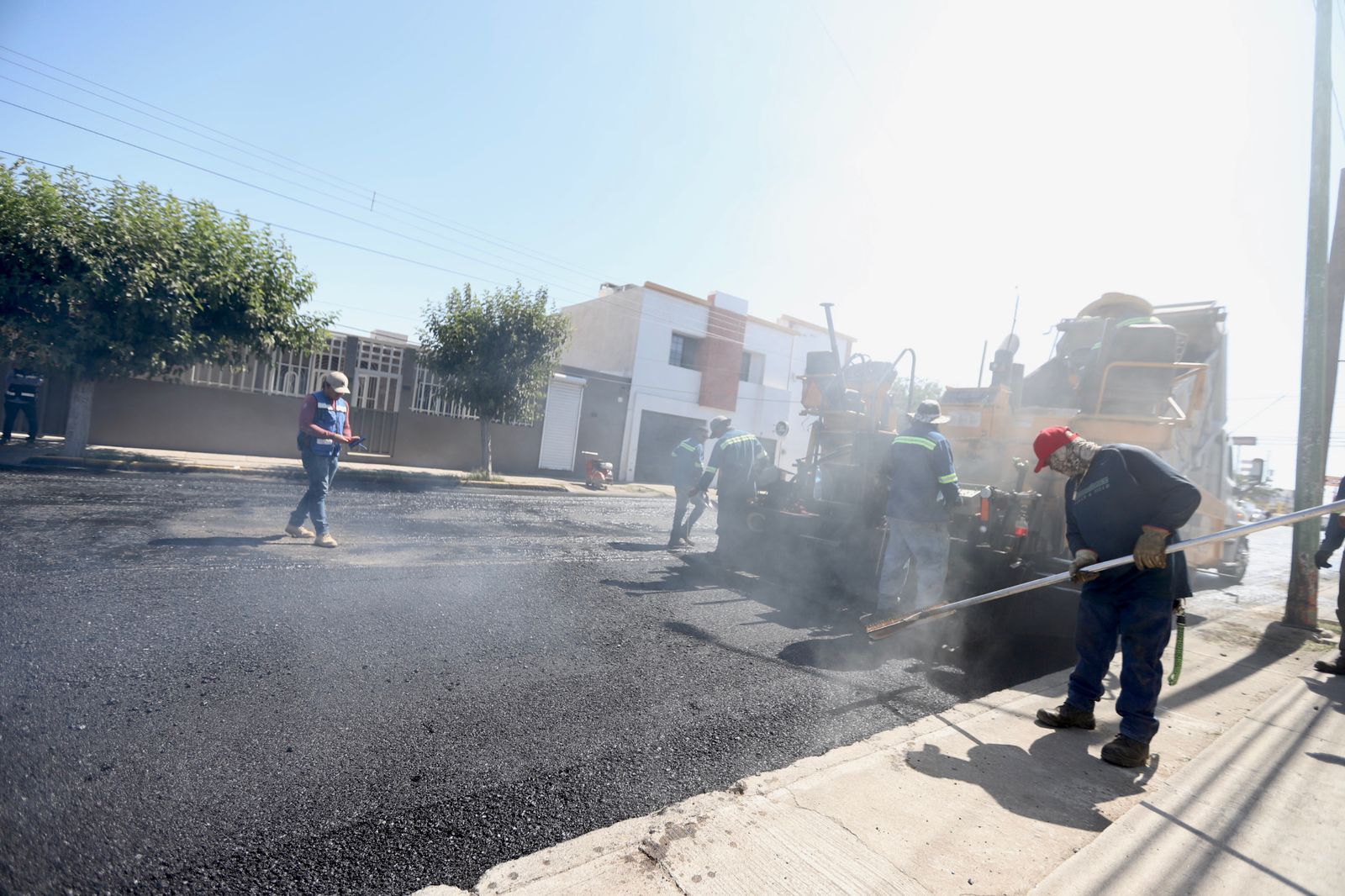 CD. JUAREZ, CHIH.- La Dirección General de Obras Públicas continúa con la repavimentación de 38 tramos de vialidades primarias y secundarias que son rehabilitadas con los recursos que recibió el Gobierno Municipal del programa de Registro Público Vehicular (REPUVE).