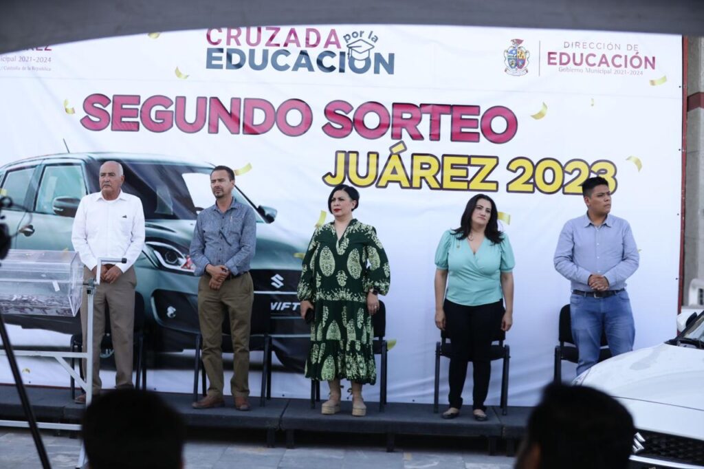 CD. JUAREZ, CHIH.- El portador o la portadora del boleto número 04375 resultó ganador de un vehículo Suzuki, modelo 2023, dentro del Segundo Sorteo de Cruzada Por la Educación que se llevó a cabo esta tarde en la explanada de la Unidad Administrativa Benito Juárez.