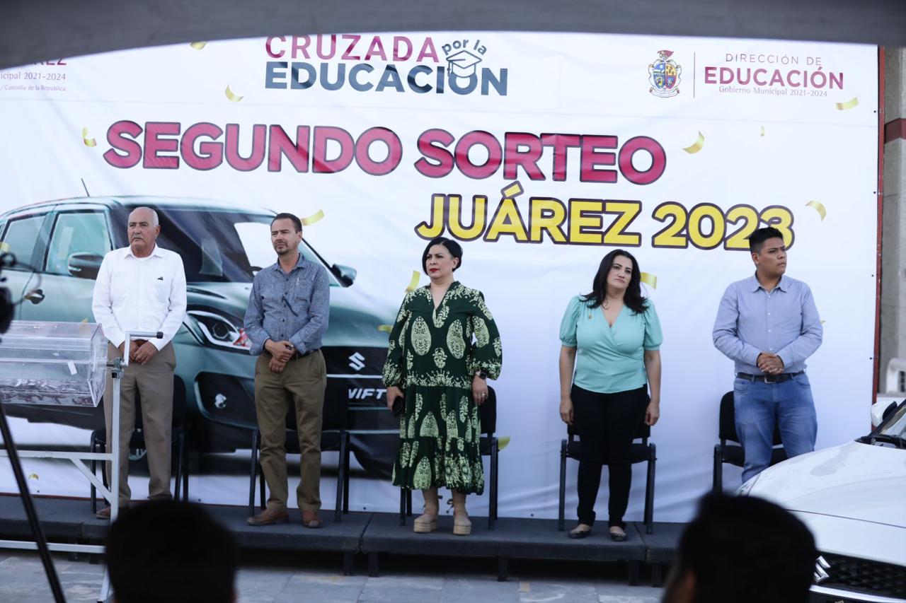 Durante la realización del sorteo estuvieron presentes en el presídium Diego Jonathan Calderón Castillo, inspector de la Secretaría de Gobernación; Dayira Raquel Fernández Martínez, Tesorera Municipal; el profesor Ramón Gómez, subdirector de la Dirección de Educación municipal; Rosa Angélica Alarcón, Oficial Mayor del municipio de Juárez y el regidor Jorge Marcial Bueno Quiroz.